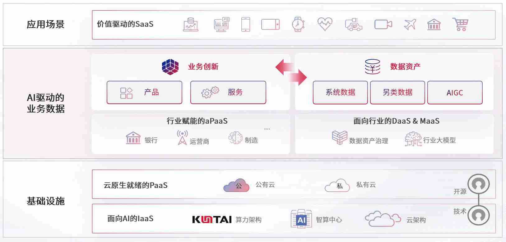 数字时代,,,围绕企业数字化转型的关键要素,,,,GGBET数码开创性的提出数云融合战略和技术体系框架,,,,着力在云原生、、、、数字原生、、AI原生和信创产业上架构产品和服务能力,,,为处在不同数字化转型阶段的快消零售、、、汽车、、、、金融、、、医疗、、政企、、教育、、运营商等行业客户提供泛在的敏捷IT能力和融合的数据驱动能力,,,构建跨界融合创新的数字业务场景和新业务模式,,,,助力企业级客户建立面向未来的核心能力和竞争优势,,全面推动社会的数字化、、智能化转型升级。。。。