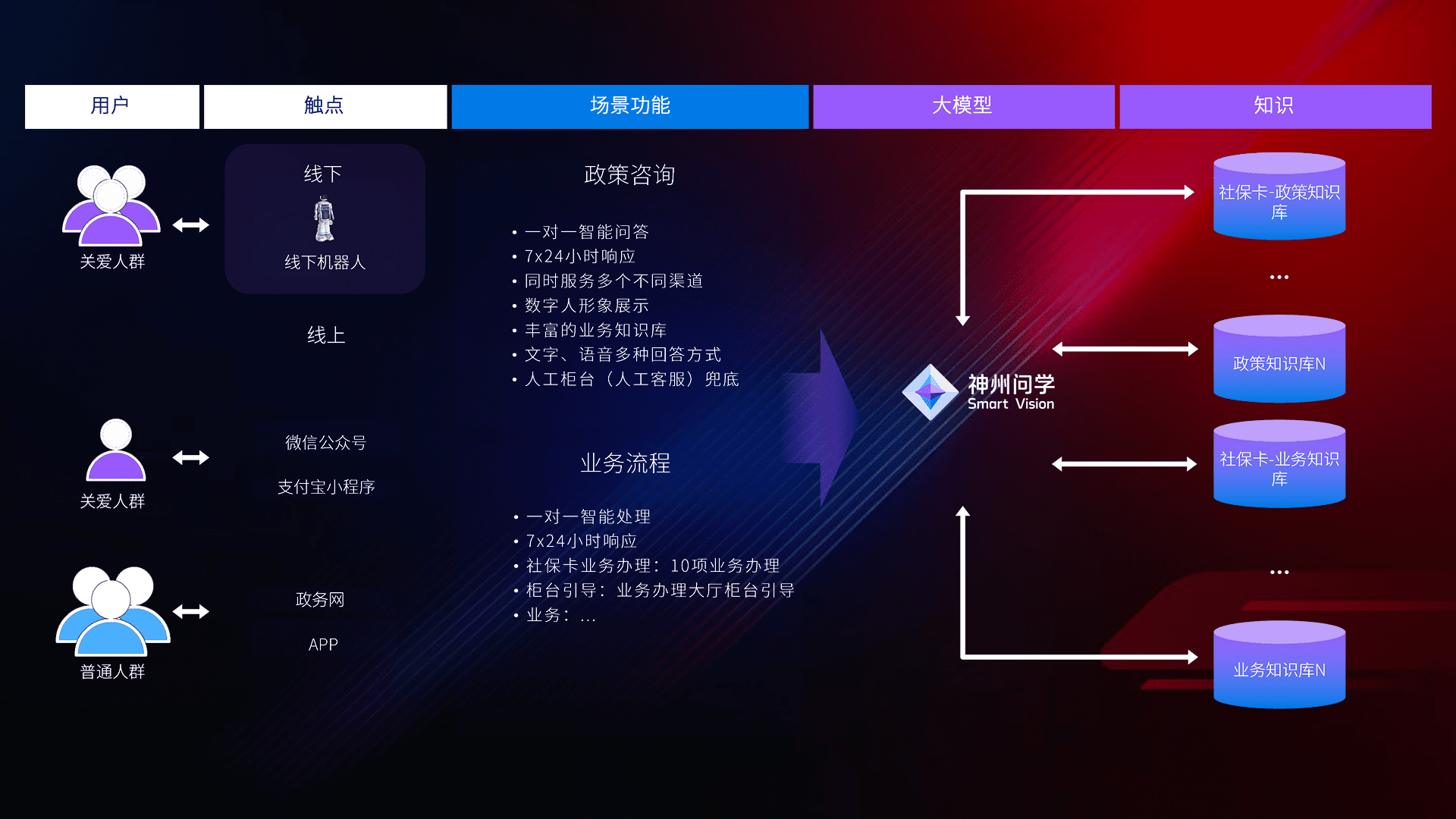 在服务大厅部署客服机器人,,在线上应用和小程序配置客服数字人,,,,724小时为群众解答常规问题,,客服机器人无法处理的,,转现场人工处理。。